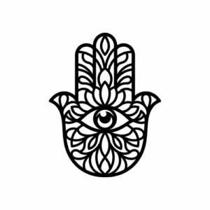 חמסה מודרנית עם עין מרכזית, בעיצוב סימטרי המשלב אלמנטים גאומטריים וזרימה אורגנית.