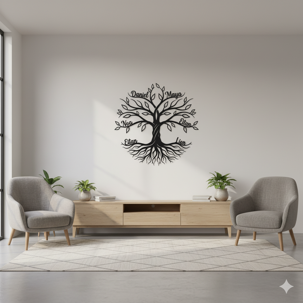 סגנון: עץ חיים בעיצוב מודרני, עם שמות בהתאמה אישית