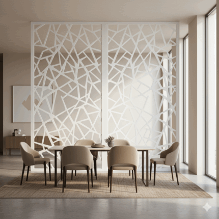 גלו את משרביית הפריים הגיאומטרית שלנו, רהיט קיר יוקרתי בעל חיתוכים מדויקים וחומר מתכת משובח בצבע לבן או שחור לפי בחירתכם. הקווים הנקיים והאיזון העיצובי מביאים לחלל נוכחות מודרנית ושקט חזותי מעודן. כל פאנל מיוצר בטכנולוגיית לייזר מתקדמת להבטחת עמידות ומראה קלאסי-עכשווי. הזמינו עכשיו בהתאמה אישית ותנו למשחק הצללים והאור להחיות את הבית או המשרד באלגנטיות וברכות.